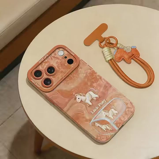 Protect your iPhone in style with this exclusive Horse Silk Pony Case. Featuring a luxurious silk finish with elegant pony design, this case combines protection with sophistication. The integrated mirror stand lets you prop your phone for hands-free viewing, while the comfortable hand strap ensures secure grip and easy portability. Perfect for those who want their phone accessory to make a statement. Durable construction shields your device from daily wear and tear.